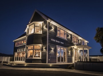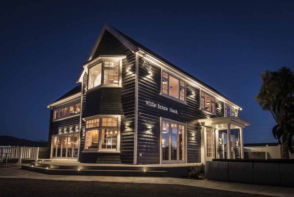 White House Black is a renovated dollhouse style colonial house in Halswell that’s taken on a new life as a black painted cafe and bar. With original features combined with pressed tin tiles, concrete accents and modern lighting, White House Black is a unique venue for a dinner or wedding. The upstairs seats up to 100 people for a dinner while canapés and cocktails can be served downstairs around the plush courtyard.
