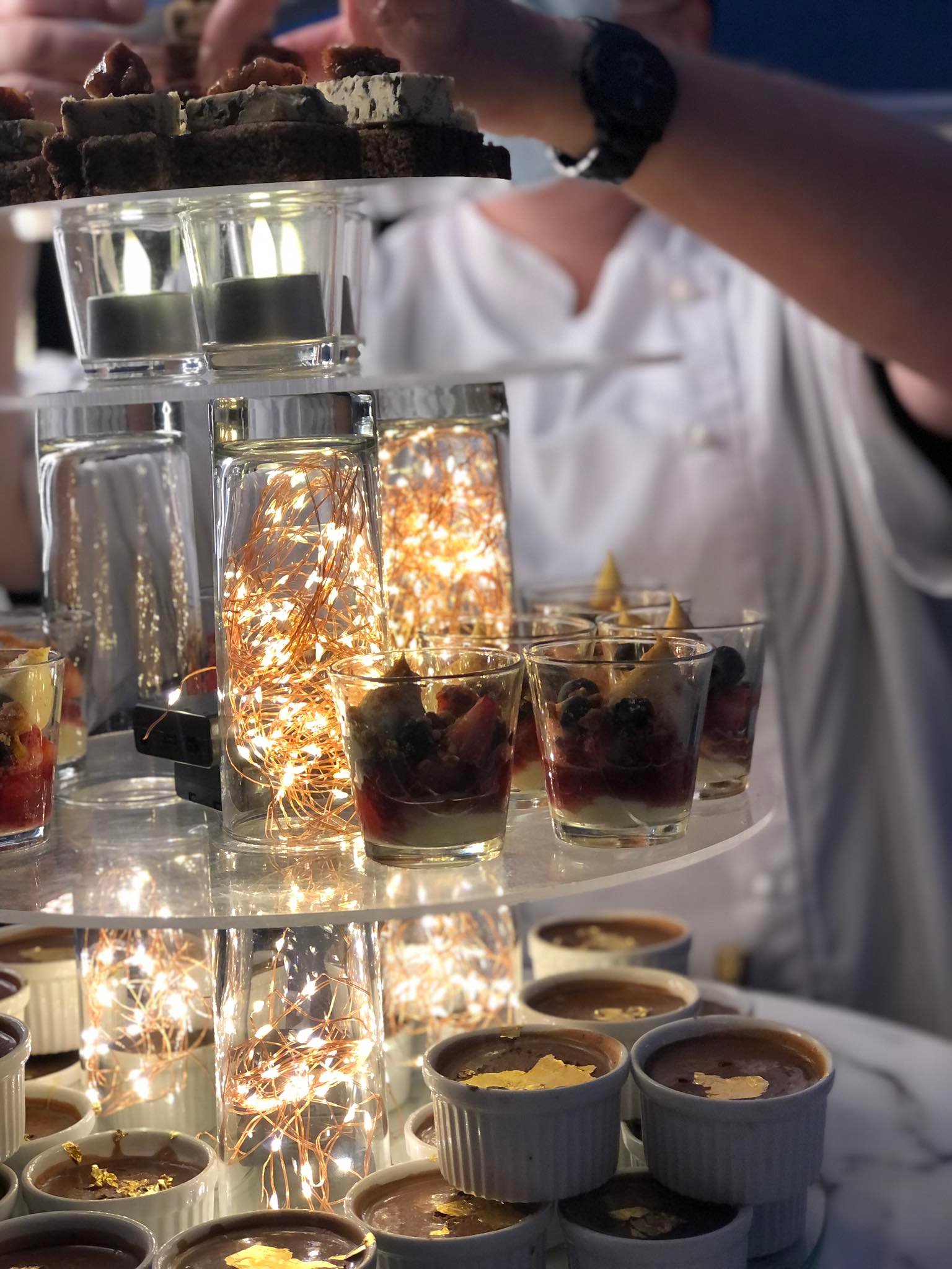Dark chocolate, gold leaf, salted caramel pots
