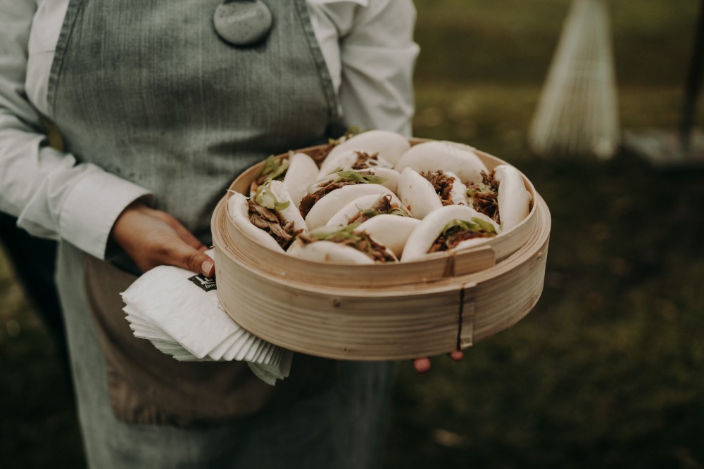 Fried chicken bao buns, with pickled carrot, coriander and gojuchang mayo